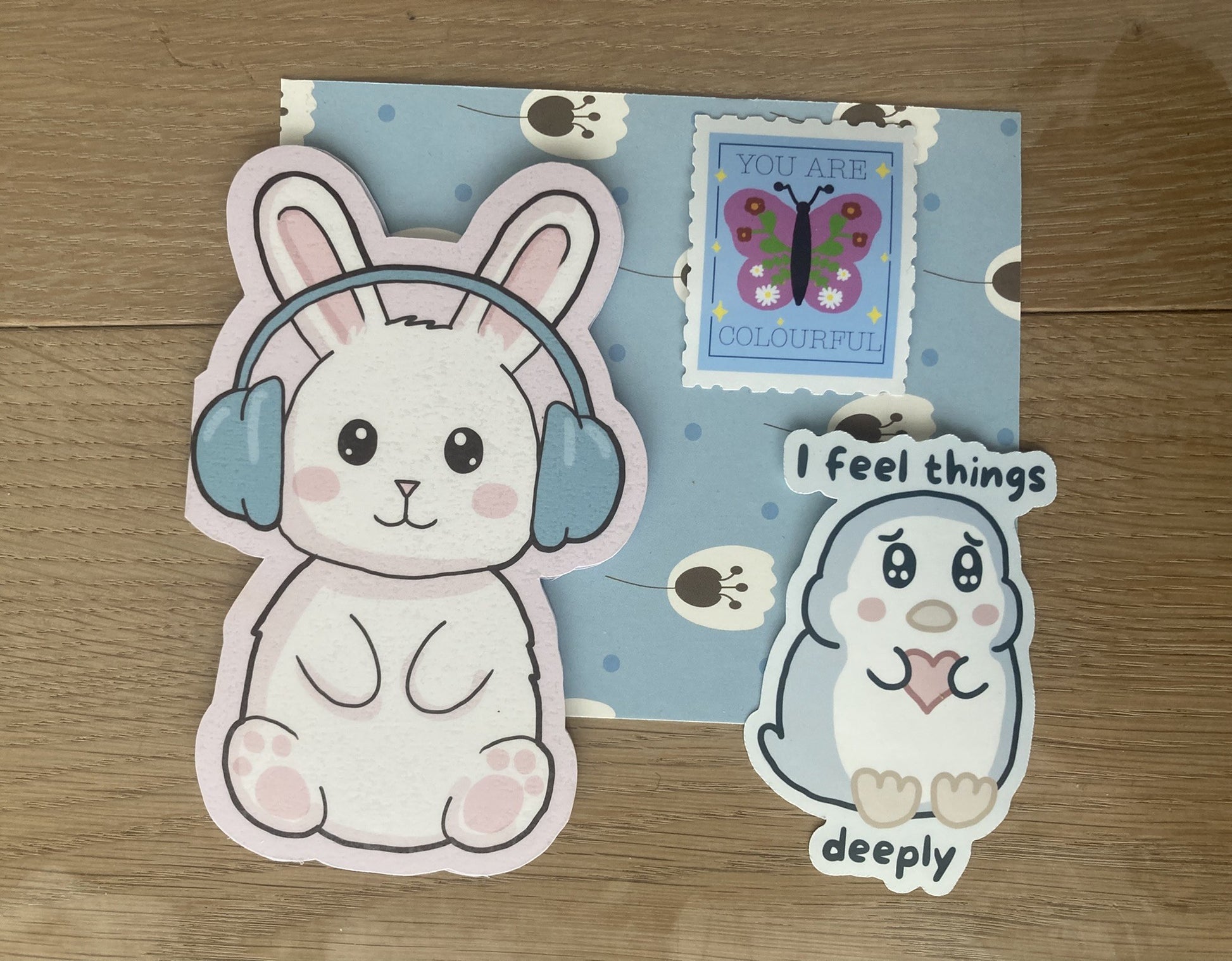 Hello, 'monthly tea club' is for neurodivergent who like cute art. Drawn by someone who is neurodivergent themselves and struggles with their mental health.